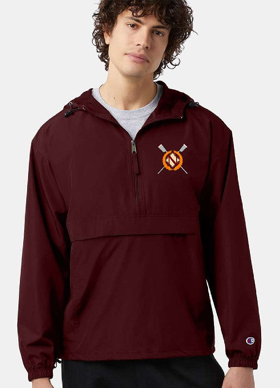 - Half-zip hood with adjustable bungie cord